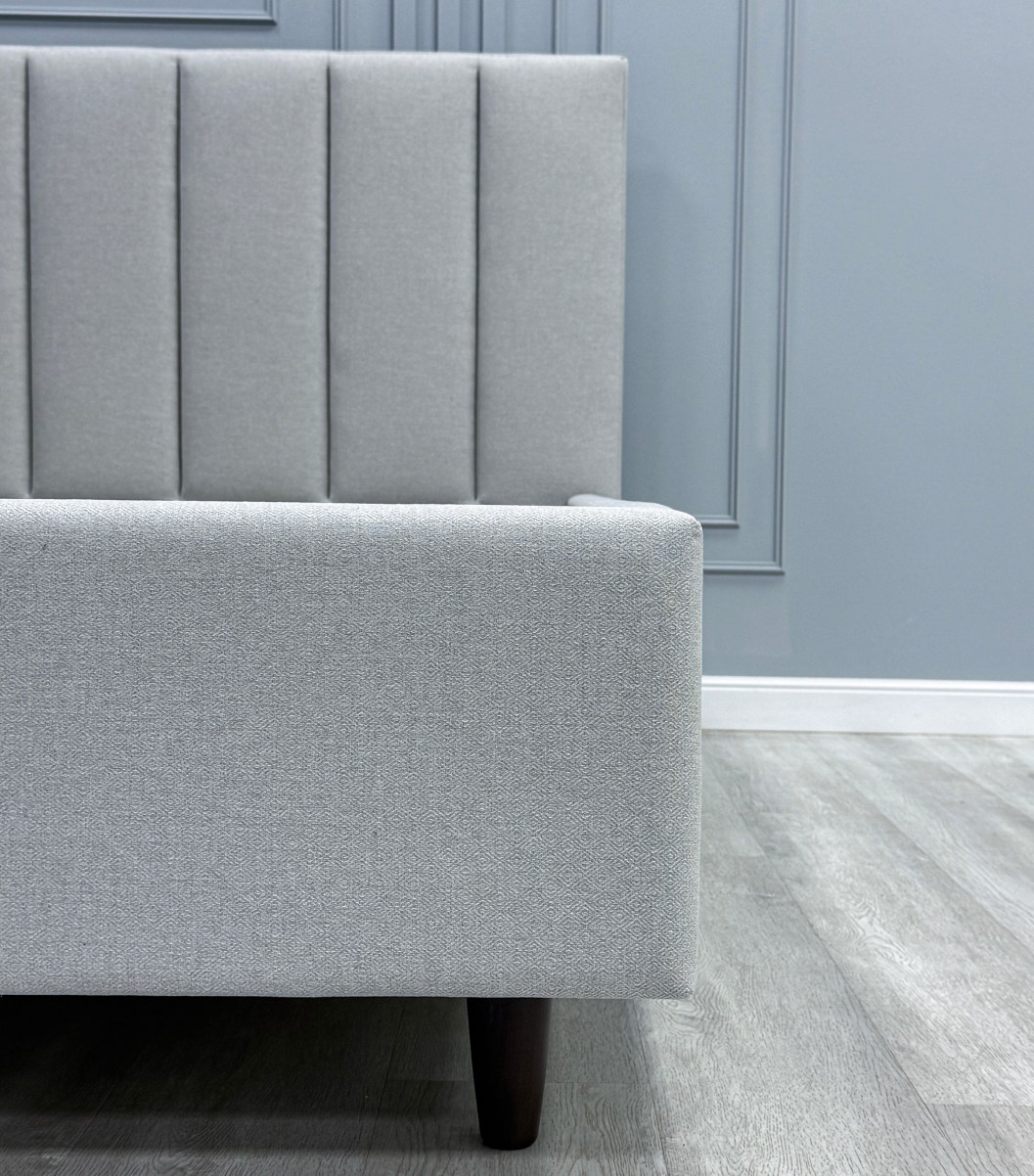 - Изголовье кровати выполнено вертикальными линиями. Данный дизайн актуален и отлично впишется в любой современный интерьер.