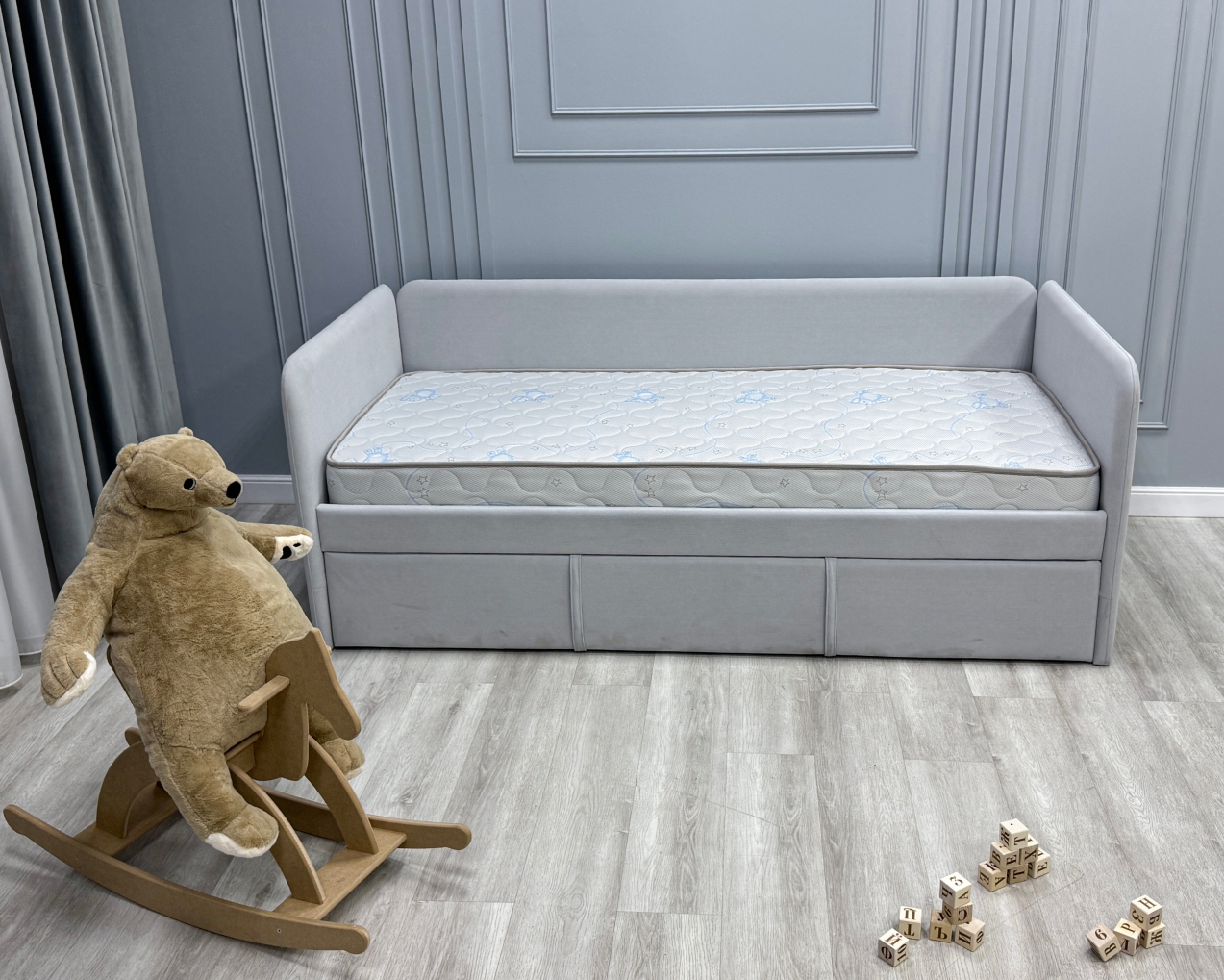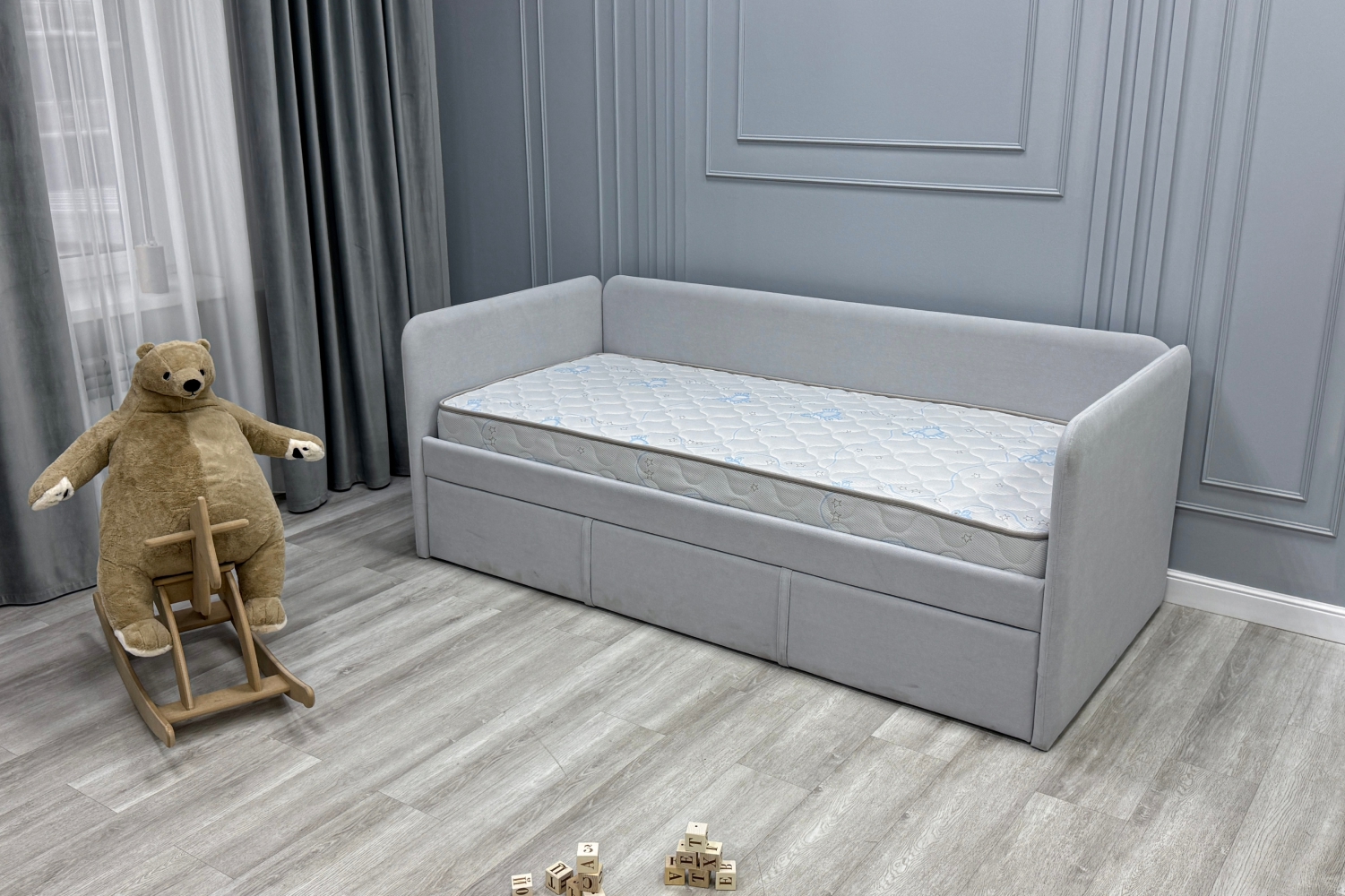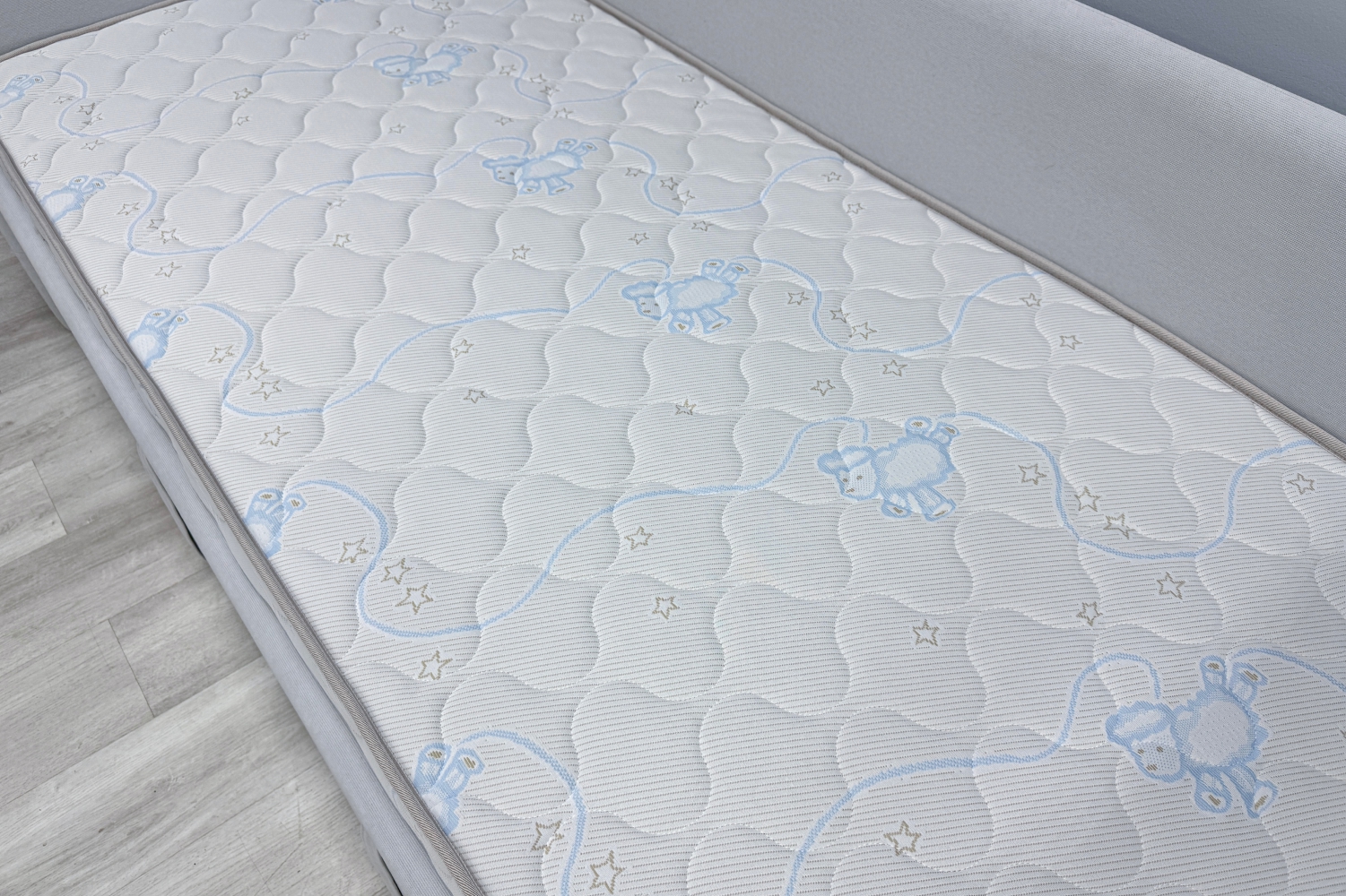 Трикотаж «Ovis» - это мягкий, дышащий и приятный на ощупь материал, созданный специально для обеспечения максимального комфорта и безопасности ребёнка во время сна. Благодаря своей эластичной структуре ткань легко подстраивается под форму матраса, не образуя складок, а высокая износостойкость гарантирует долгий срок службы. Материал обладает хорошей воздухопроницаемостью, что помогает поддерживать оптимальный микроклимат в спальном месте. Поверхность трикотажа «Ovis» гипоаллергенна и не вызывает раздражений, что особенно важно для чувствительной детской кожи.)